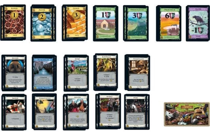 Deze tweede editie van Dominion bevat puntenkaarten, geldkaarten en 26 verschillende koninkrijkkaarten. In vergelijking met de eerste editie zijn er 6 koninkrijkkaarten vervangen en is er 1 toegevoegd. Elke beurt koop je er kaarten bij, waardoor je op jouw manier je doel kunt bereiken. Ga je voor een constructieve methode met de Smidse, het Dorp en de Markt, of probeer je het op een agressievere manier met de Heks of de Militie? Omdat in elk spel maar 10 van de 26 koninkrijkkaarten worden gebruikt, is Dominion iedere keer weer anders.