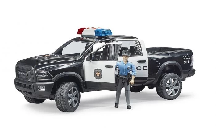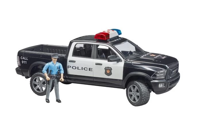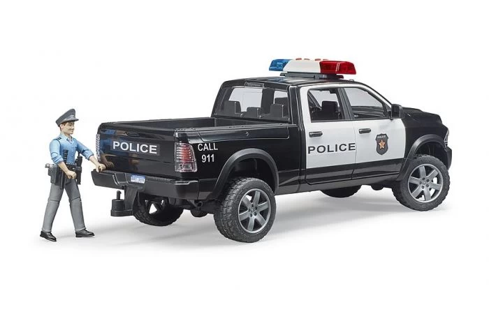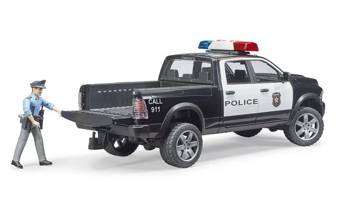 Dit model op een schaal van 1:16 is voorzien van vering op beide assen om rijcomfort en off-road vermogen te bieden. In dit verband kan de vooras worden gestuurd met behulp van de meegeleverde stuurwielextensie. De achterklep gaat open om hem te vervoeren tijdens het spelen. De meegeleverde politieman is uitstekend uitgerust.