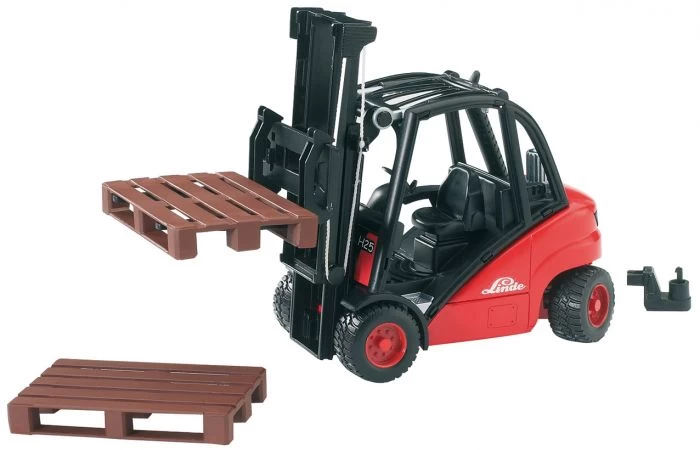 Deze Linde vorkheftruck van Bruder is absoluut onmisbaar in de logistiek! Met deze vorkheftruck laad en los je de vrachtauto’s en deze word geleverd met 2 pallets.
