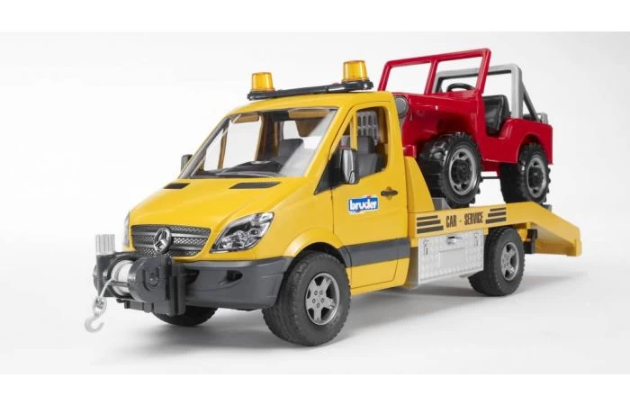 Deze nieuwe en moderne autotransporter van Mercedes Benz is een in het oogspringende auto. De Transporter is voorzien van uitschuifbaar oprijplatform, zodat de Jeep eenvoudig achterop kan rijden. Ook kan de te vervoeren auto met de lier op de trailer worden getrokken.