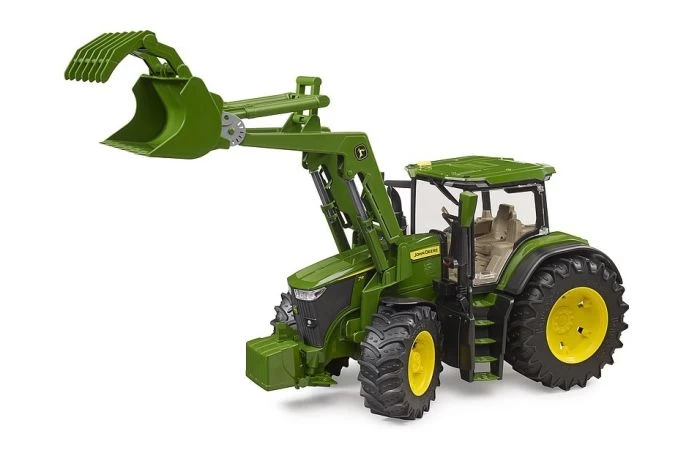 De John Deere tractor is uitgerust met veel realistische details. De motorkap gaat open en onthult de imposante motor. Deuren kunnen geopend worden en bieden plaats aan de optioneel verkrijgbare Bworld figuren in een moderne cabine. Kenmerkend voor Bruder is de uitstekende bestuurbaarheid en het rijcomfort door de ingebouwde pendelas en de stuurverlenging die door het schuifdak kan worden gebruikt. Voor nog meer speelplezier is deze tractor voorzien van bijpassende voorlader.