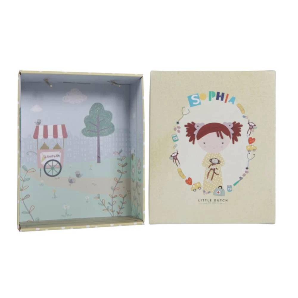 Hallo! Mijn naam is Sophia en ik ben jouw nieuwe vriendinnetje. Met mijn knuffelaapje in mijn ene hand en jou in mijn andere hand, kunnen wij alles aan. Prachtige pop van Little Dutch om mee te knuffelen.