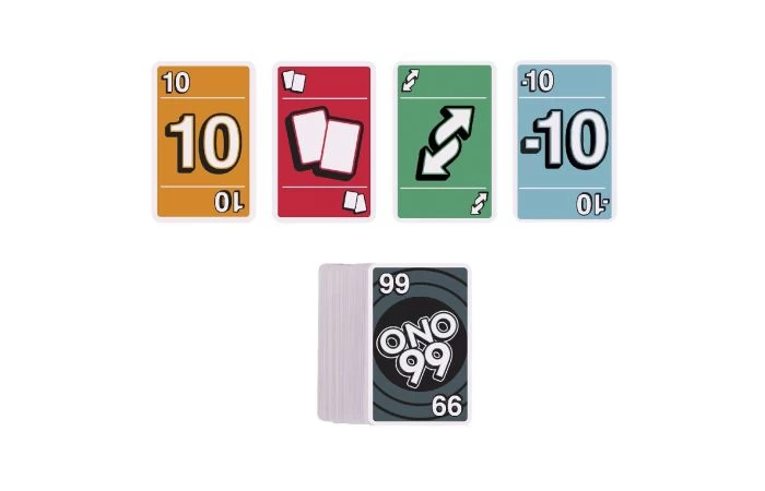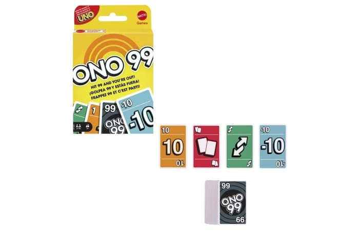 Het snelle ONO 99 kaartspel is gemakkelijk te leren. De spelers moeten voorkomen dat ze de kaart op de stapel gooien, waardoor het lopende totaal naar 99 of meer gaat! Elke kaart telt en terwijl de spelers een kaart op de aflegstapel leggen, roepen ze het totaal hardop. Vergeet niet dat het doel is om het totaal onder de 99 te houden! Let goed op, want één van de kaarten is de ONO 99 kaart. Als een speler een ONO 99 kaart krijgt of trekt, moet hij de kaart bewaren en mag hij deze niet spelen! Met het ONO 99 kaartspel leren kinderen optellen en aftrekken. De laatst overgebleven speler wint. Een geweldige keuze voor een spelletjesavond, of om mee te nemen als je op reis bent. Geschikt voor 2 tot 10 spelers vanaf 7 jaar.