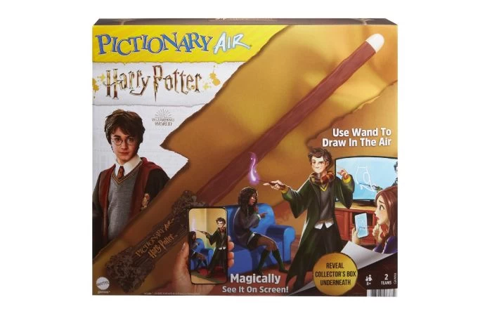 Toverstok in de aanslag! Geef je spelavond een magisch tintje met deze Harry Potter uitvoering van Pictionary Air. Teken in de lucht wat je teamgenoten moeten raden. Welke tovenaar, heks of Dreuzel weet als eerste het juiste antwoord?