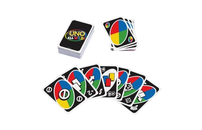 In UNO Wild met keuzekaarten is elke kaart speciaal, voor een snelle en onvoorspelbare versie van deze gezinsfavoriet! Je hoeft geen cijfers of kleuren meer te matchen zoals bij normale UNO, maar het is moeilijker dan het lijkt. Speciale Actiekaarten zetten het spel op zijn kop! Er is een keuzekaart Dubbel Overslaan, waarbij twee spelers hun beurt verliezen in plaats van één, een keuzekaart Handenwissel, waarbij spelers van kaarten moeten wisselen, en nog veel meer! Geschikt voor 2 tot 10 spelers vanaf 7 jaar.