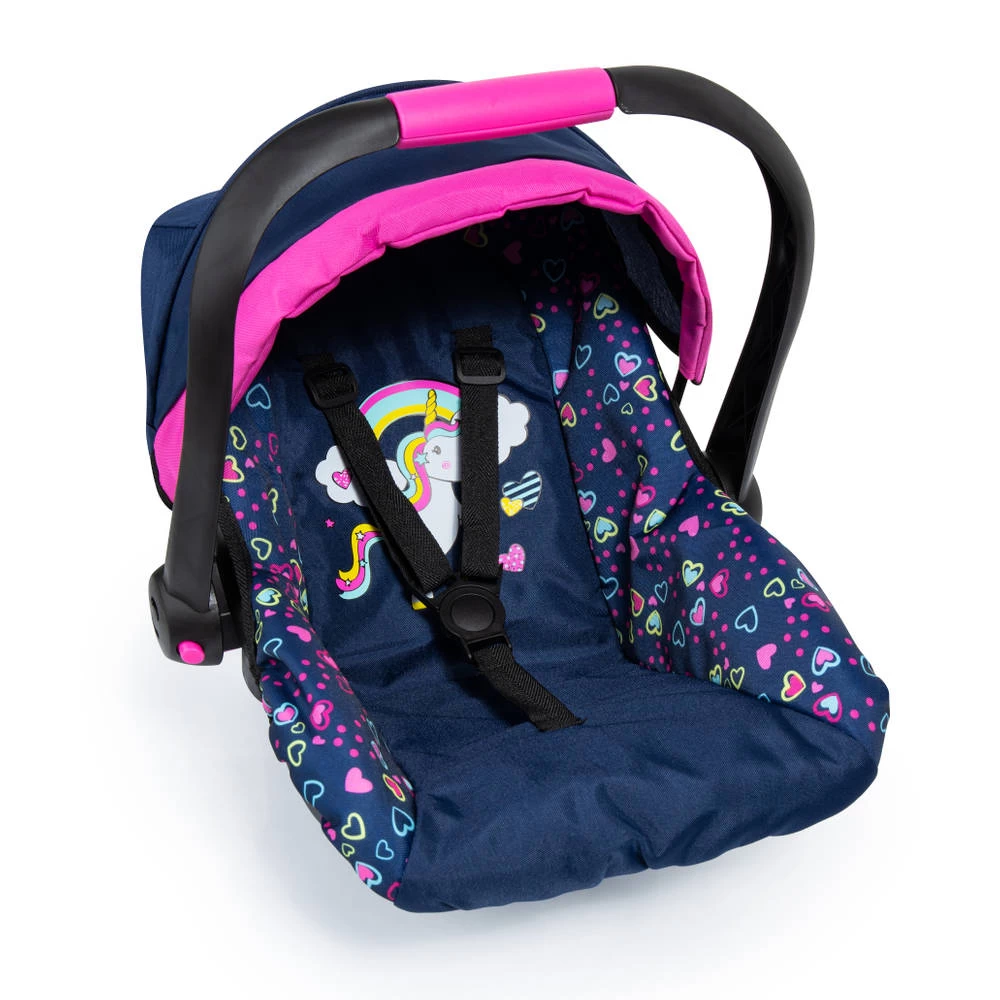 Dit poppenautozitje is niet alleen mooi, maar ook echt superhandig. Het heeft een mooie kleur en is geschikt voor poppen tot 46 cm. Dankzij de prachtige stof en het geïntegreerde zonnescherm zit de pop of knuffel comfortabel en wordt hij/zij beschermd tegen zon en wind. De geïntegreerde veiligheidsgordel zorgt ervoor dat je pop goed beveiligd is tegen vallen en zoete dromen kan hebben tijdens het reizen. Het ergonomische handvat is comfortabel om het stoeltje te dragen, dus het is gemakkelijk om de pop overal mee naar toe te nemen.