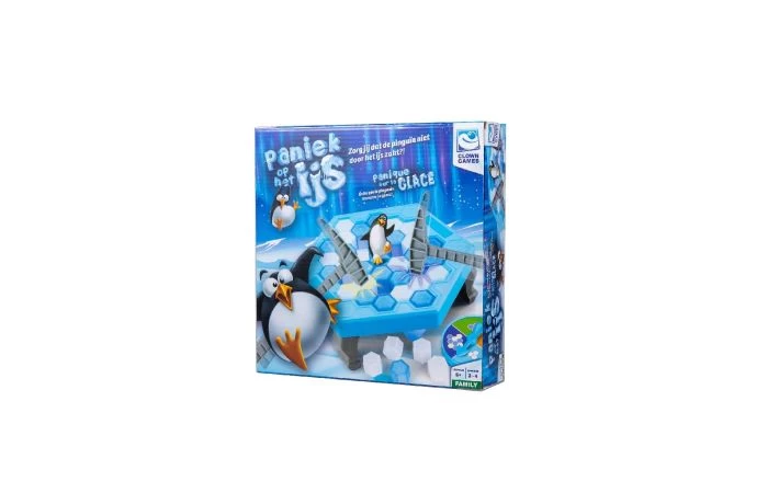 Zorg jij dat de pinguïn niet door het ijs zakt? Om de beurt mag je aan het rad draaien, en je voert steeds de opdracht uit die de pijl aanwijst. De speler, die de pinguïn van het ijs laat vallen, verliest het spel! Voor 2 tot 4 spelers vanaf 5 jaar.