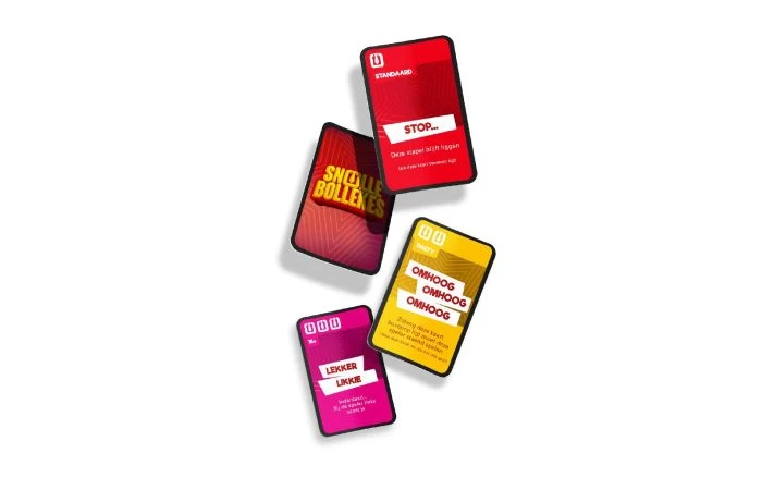 Het knotsknettergekke kaartspel om ieder feest een extra boost te geven! Naar links?! Of naar rechts?! Het kan in dit kaartspel alle kanten op! Gooi met de dobbelsteen en leg je kaarten strategisch weg om zoveel mogelijk stropdasjes te verdienen. Of boeien die stropdasjes je niet en zie jij je vrienden liever gekke dansjes doen, op elkaars rug rijden en de polonaise lopen? Stel zelf je eigen spel samen door de partykaarten toe te voegen en ga gestoorde fysieke uitdagingen aan. Of mag het dak er écht af en willen jullie hakken, beuken, springen? Voeg dan de 18+-kaarten toe! Snollebollekes Het kaartspel is voor alle vrouwkes en mennekes die van een verrekkes lekker feest houden! En nu met z’n allen kaarten nondeju! Geschikt voor 2 tot 6 spelers vanaf 10 jaar.