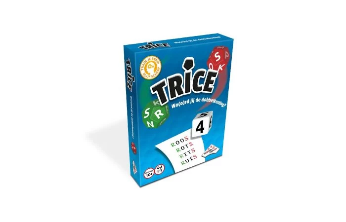 Wo(o)rd jij de dobbelkoning? Met Trice kun je spelen en tegelijkertijd je hersenen trainen! Gooi een groene (beginletter), rode (eindletter) en witte dobbelsteen (aantal letters). Schrijf binnen één minuut zoveel mogelijk woorden op met de beginletter, eindletter en het aantal letters dat je hebt gegooid. Elk woord is 1 punt. Wie na zes rondes de meeste punten heeft, is de winnaar! Geschikt voor 1 tot 7 spelers vanaf 10 jaar.